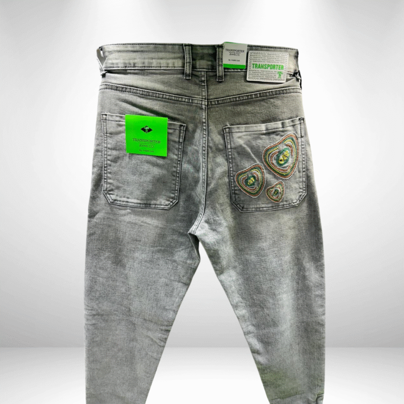 Upgrade your wardrobe with Transporter Jeans Co. Men’s Premium Normal Fit Ankle Length Jeans.Crafted from premium denim fabric, these jeans are designed to provide all-day comfort while maintaining a stylish appeal. The washed grey shade adds a trendy look, while the colorful embroidery on the back and coin pocket gives a unique, modern twist to…