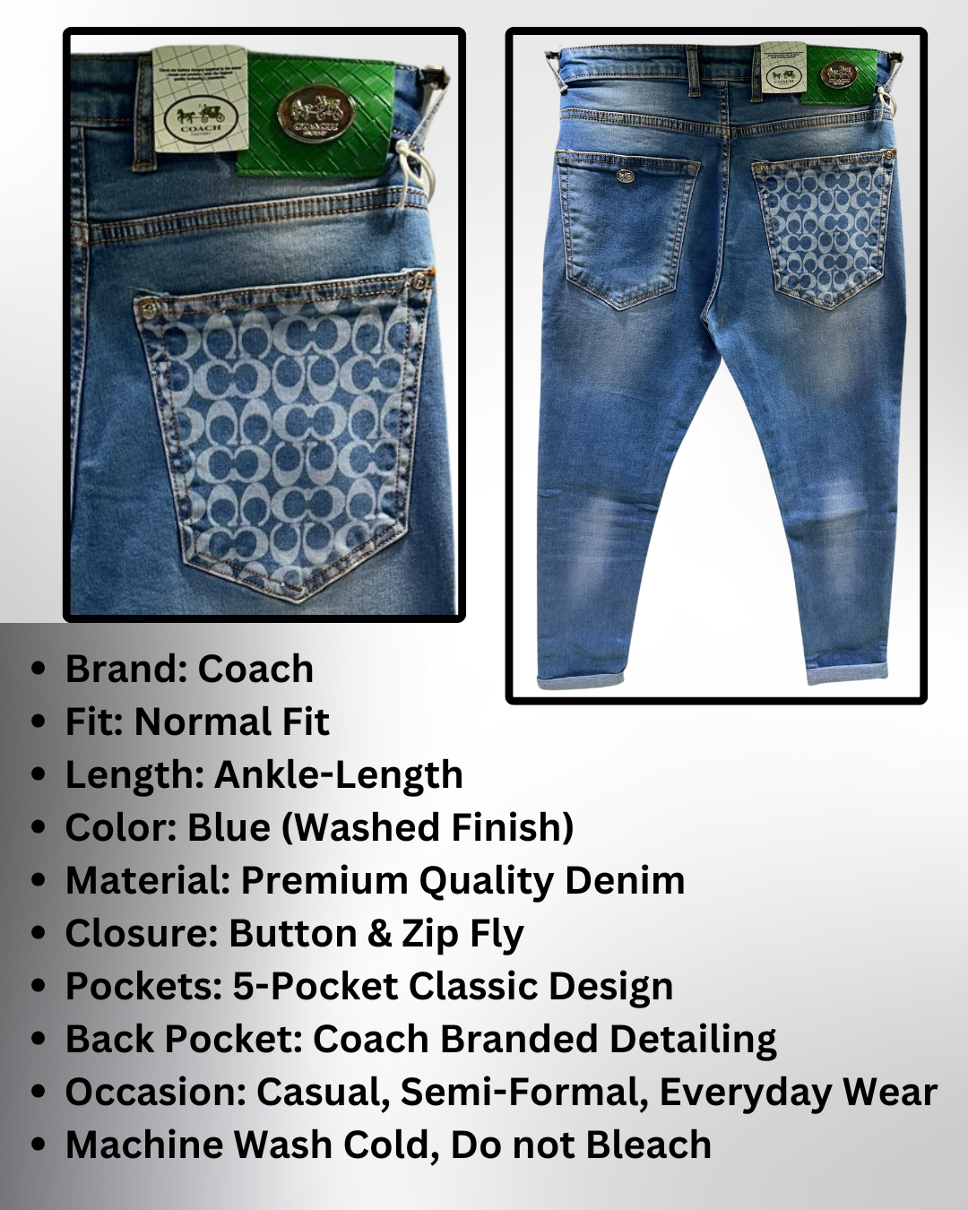 Redefine your casual wardrobe with the Coach Men’s Premium Normal Fit Ankle-Length Blue Jeans. Crafted from high-quality denim, these jeans feature a stylish blue wash with subtle fading for a modern yet timeless appeal.
