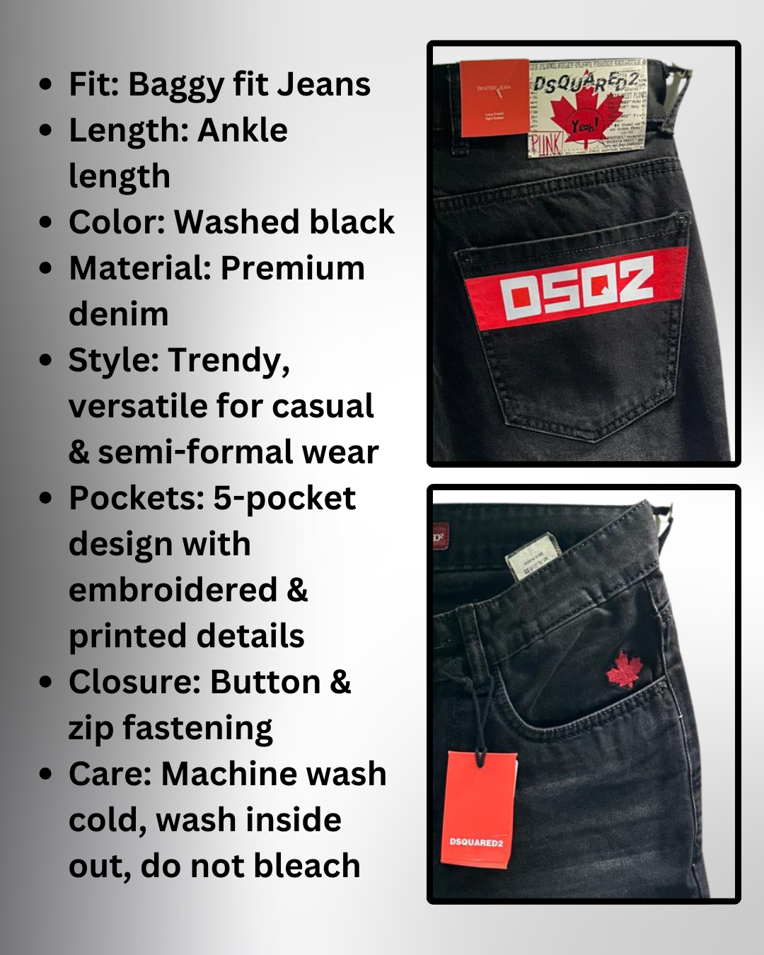 ✅ Highlight: Maple leaf embroidery on front pocket + bold DSQ2 print on back pocket