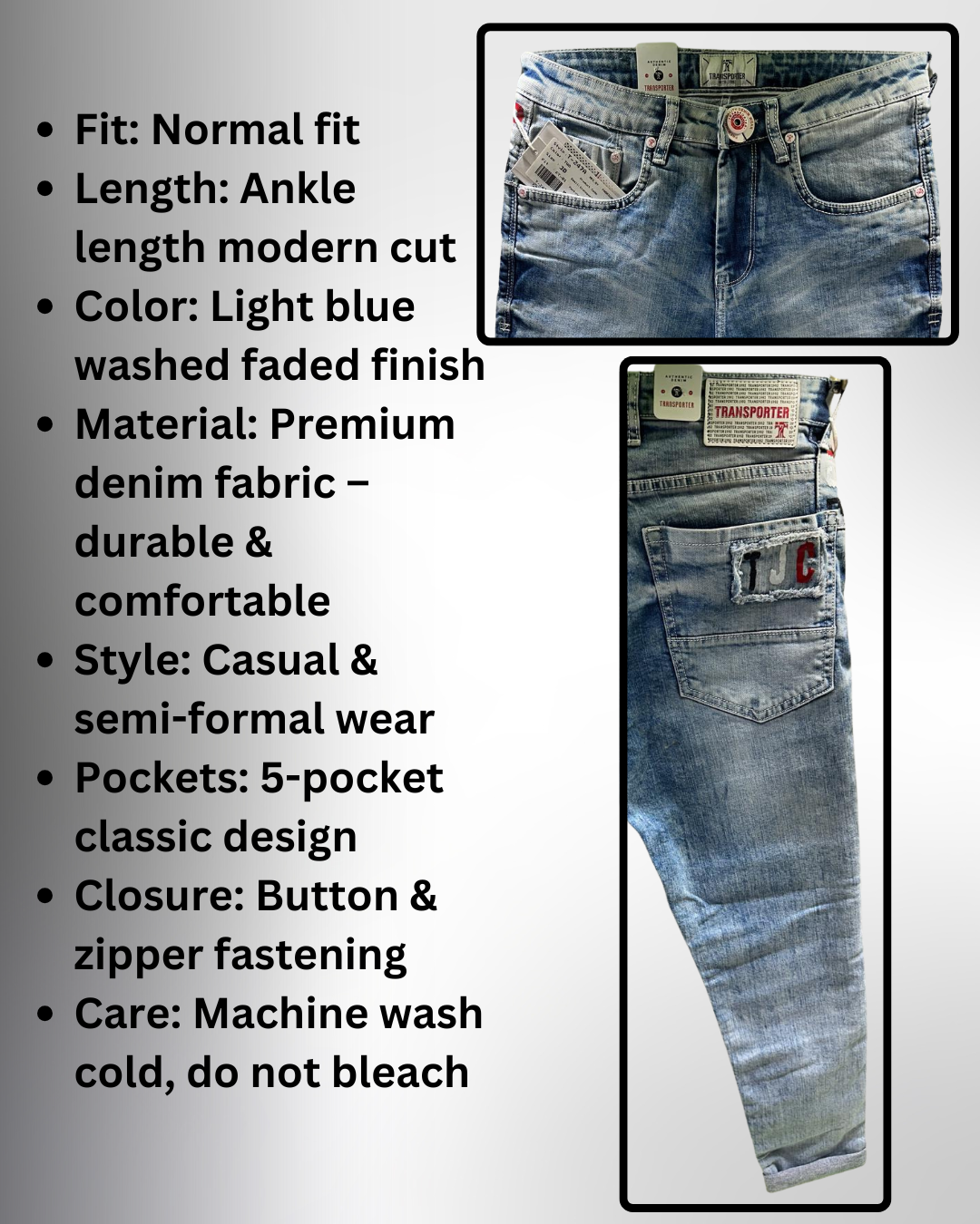 - Discover the perfect balance of comfort and fashion with our Premium Light Blue Washed Men’s Jeans. Crafted from high-quality denim, these jeans feature a modern washed look that adds a trendy edge to your style. The normal fit with ankle length cut ensures all-day comfort without compromising on style.