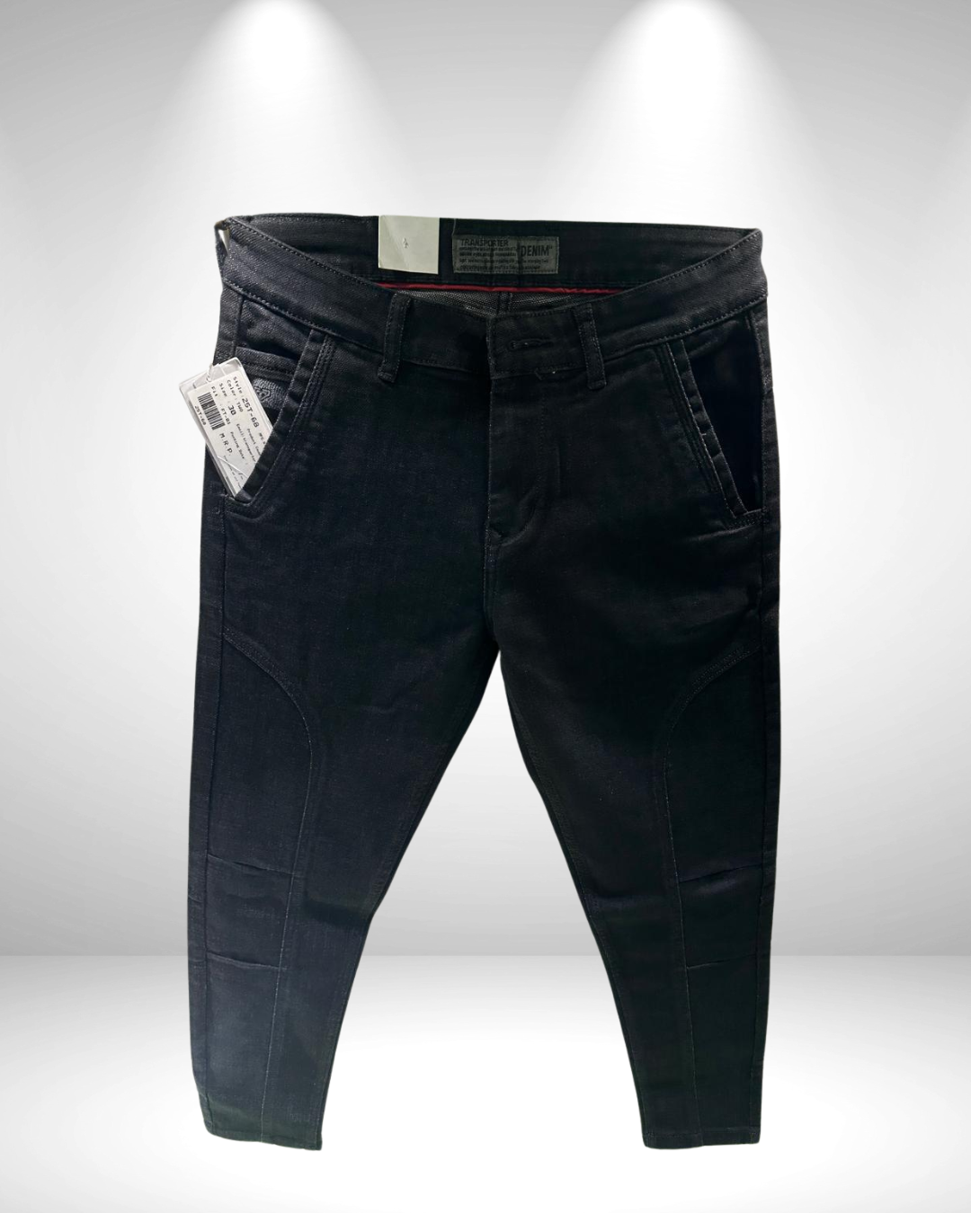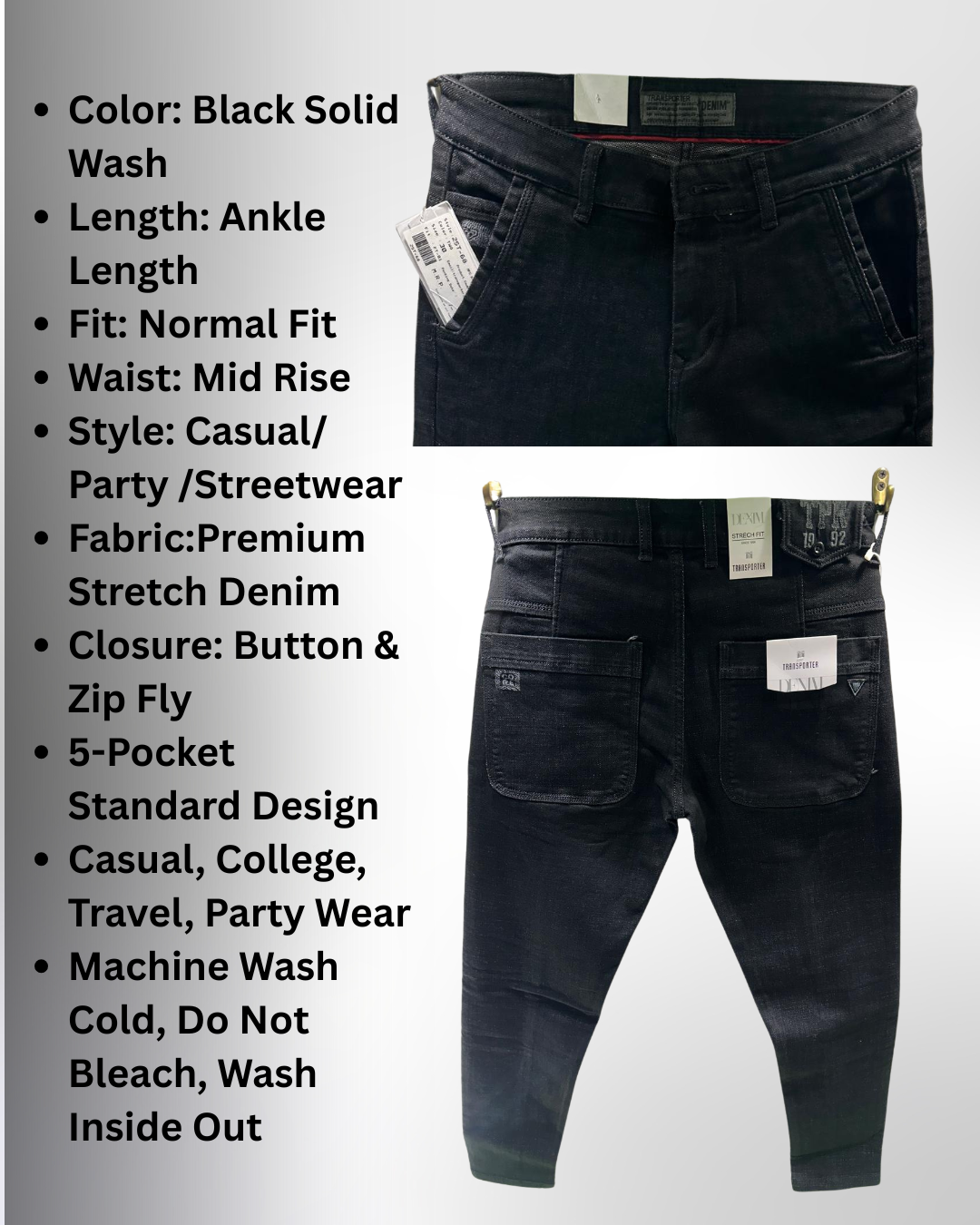 Upgrade your wardrobe with these premium quality ankle-length men’s jeans, designed for modern men who value comfort as much as style. Crafted from soft stretchable denim, these jeans feature a sleek black wash with subtle detailing that makes them versatile for both casual and semi-formal occasions.