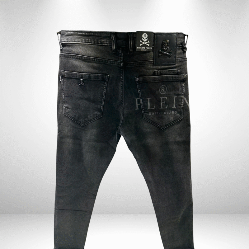 Premium quality men’s ankle-length jeans with a washed black finish. Crafted from durable denim for comfort and everyday wear. Normal fit, trendy design, and signature Philipp Plein-inspired branding.